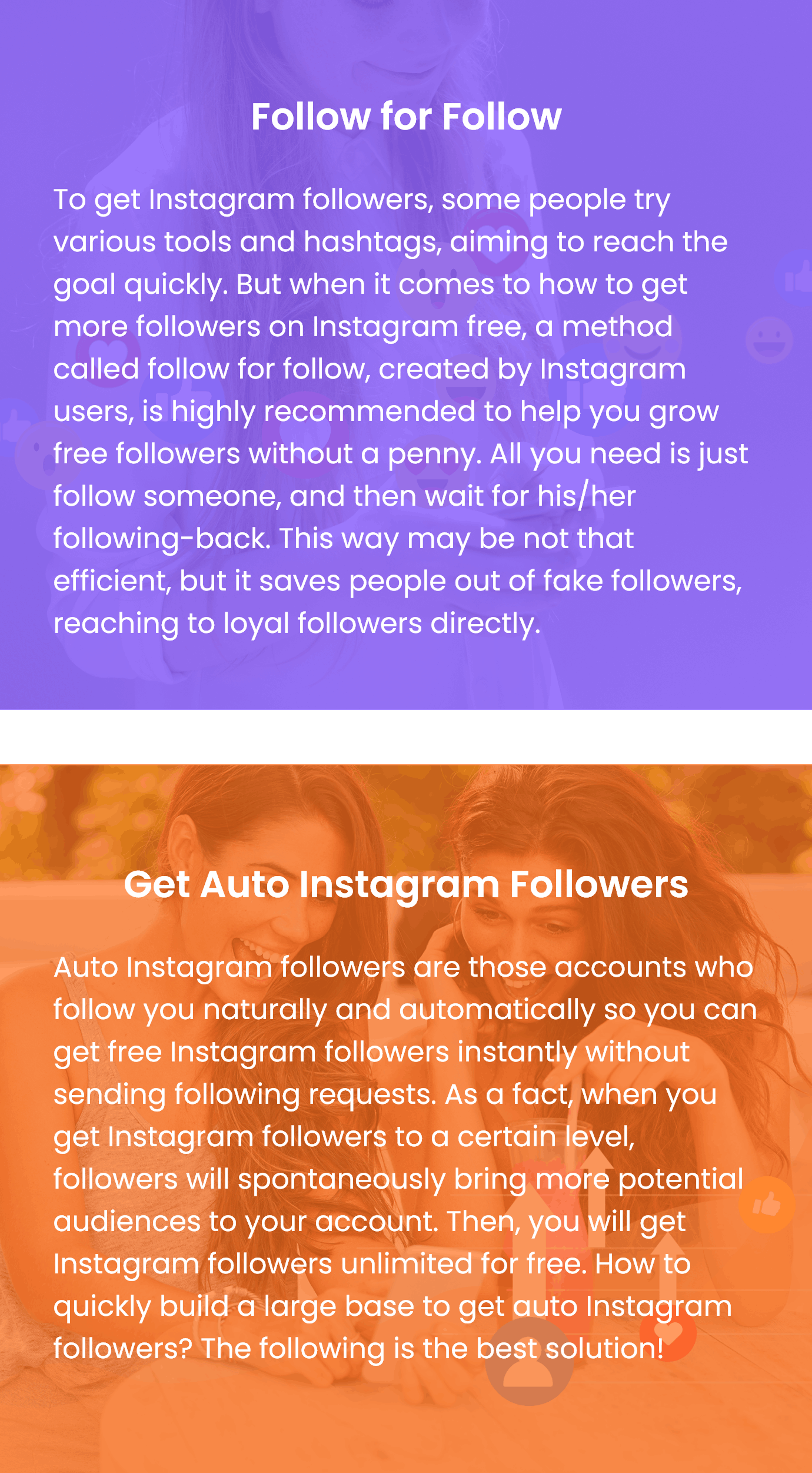 Ins Followers will never ask users for private information. And the app contains no virus. Every step within is tested to be 100% safe and clean.